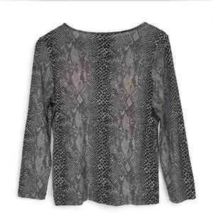 Vintage-inspired Early 2000s Slinky Neutral Snakeskin Top 3/4 Sleeve Rafaella Shirt (Small) – Y2K Glamcore Streetwear
