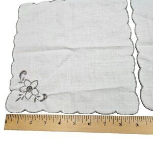 Vintage Set Of 4 Embroidered Linen Napkins With Floral Design MCM Off White Gray