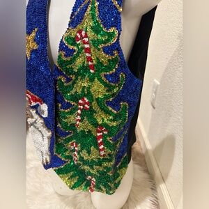 Vintage Sequined Santa & Tree Vest size Large