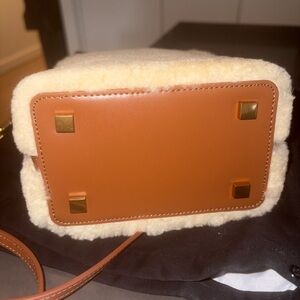 Saint Laurent Shearling Crossbody Bag in Cream and Tan