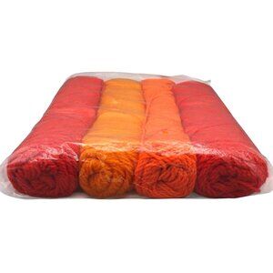 Groovy crochet kit by Bucilla called "Charmed Circle." The color is called "Bright Oranges" and a couple of them are closer to red in my opinion. This kit contains the four skeins of acrylic yarn needed and instructions. You will need a size H crochet hook. It states on the package that it fits all sizes. There doesn't appear to be a closure on the sweater vest or pockets but there is a collar. This is new old stock so the package has not been opened yet. It would be great for a gift! Please note that the package looks aged.