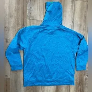 Teal hoodie with front pocket. Features Under Armour logo. Comfortable and stylish.