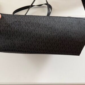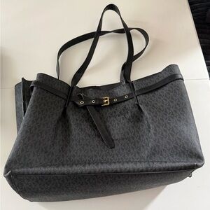 Gently used Michael Kors tote with signature pattern. Features sleek black straps and gold-tone accents. Perfect for everyday elegance.