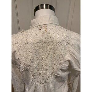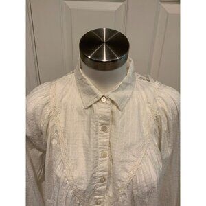 Pilcro & The Letterpress White Textured Shirt W/ Lace Accents, Size XS
