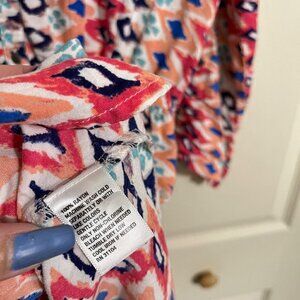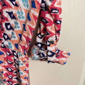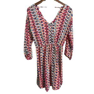 Red Camel Womens Pink Geometric Aztec Vneck Roll Tab Sheath Dress Medium. Measurements Shoulder to shoulder: 24" Underarm to underarm: 22" Length: 34" Sleeve: 14" Waist: 24"-40" Offers always welcome! Measurements are approximations taken while hanging