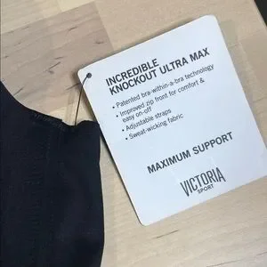 Victorias Secret Sport Bra Maximum Support. 36C. Brand New. Black with shimmery gold straps. Experience comfort and support with the Women's Black Sports Bra. Perfect for workouts or everyday wear.