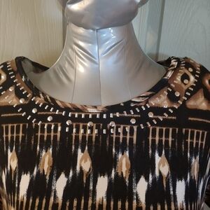 Kim Rogers Womens Shirt Size Petite XL Geometric Short Sleeve PXL Blouse Top