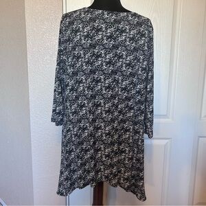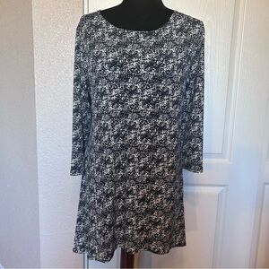 Alfani Black and White 3/4 Sleeve Swing Hemline Blouse Shirt Size Large