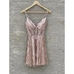 This dress is so pretty! It is pre owned but appears to have never been worn. The perfect dress for homecoming or a fun girls night out.