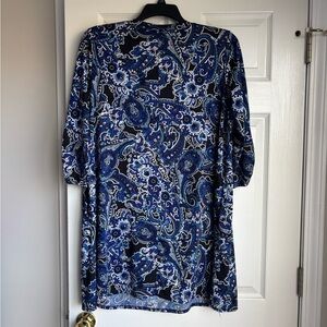 Apt. 9 Navy and White Paisley Long Sleeve Dress