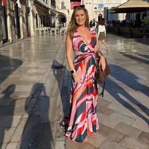 The PatBO Delos Plunge Maxi Dress size 12 colorful resort wear dress.