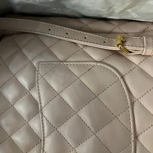 Used 100% authentic, no questions asked. Calfskin leather with gold tone metal accent. Colour is light pink/beige. Made in Italy.