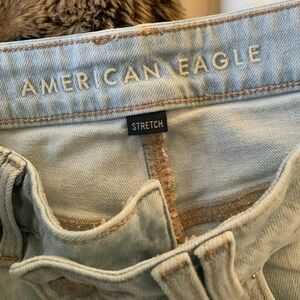 AE Dreamy Drape Stretch Low-Rise Baggy Wide-Leg Jean light wash short
