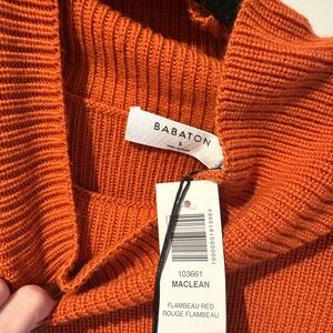 Stylish turtleneck sweater dress. Perfect for a cozy and chic look. Aritzia Babaton Maclean Merino wool dress. Color is flambeau red but more orange like in stock photo.