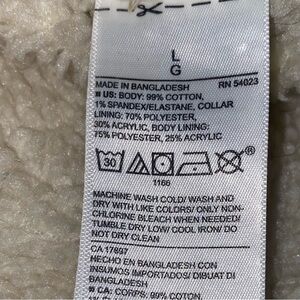 - Soft, durable off-white, ecru-wash cotton denim, with cozy - contrasting sherpa fleece body lining (sleeves are unlined).