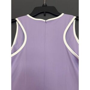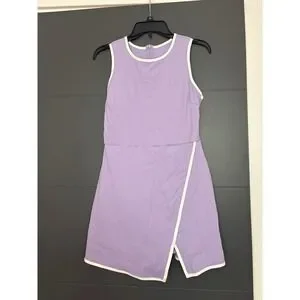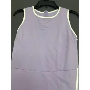 Sport this vibrant violet skort dress and feel effortlessly chic on the court or during your next round of golf. The flattering A-line silhouette offers freedom of movement, while the built-in shorts provide confidence and comfort. Contrast piping adds a polished, athletic flair to this versatile piece, perfect for an active day out or a casual brunch.