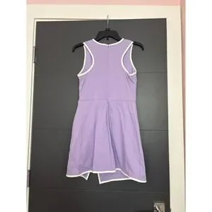 Keywords: athletic dress, tennis dress, golf dress, sporty, skort, violet, contrast trim, athleisure, performance, quick dry, lightweight, active, game day