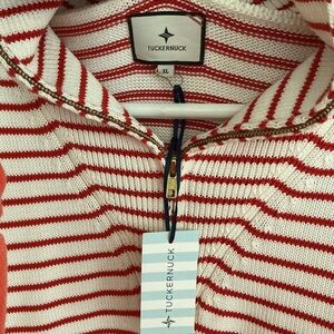 NWT Tuckernuck Hartwell sweater in a size XL. This cotton knit has a 1/4 zip front and is red and white.