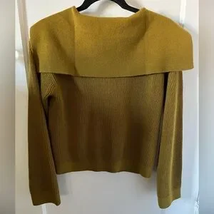 Gorgeous all-natural fiber sweater in a rich olive green. Sailor -style collar elevates the look.