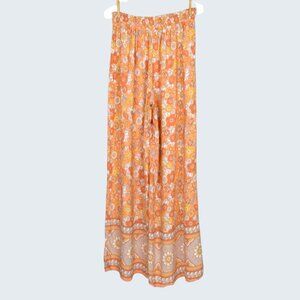 PINK LILY TIE WAIST BOHO FLORAL PRINT WIDE LEG PANTS
