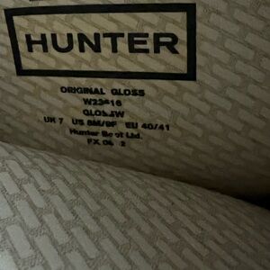 Crafted from natural rubber, the Hunter Tall Gloss Rain Boot has the classic silhouette of the Original, with the addition of a high-gloss finish for extra polish. Handcrafted high-gloss rubber upper 1-inch heel 16-inch shaft height 16-inch shaft circumference Side strap accent with buckle closure Signature logo patch Rounded toe Classic fit Pull-on style Textile lining Calendered rubber sole Imported.