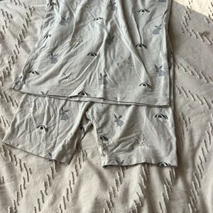 Soft and breathable pajama set. Features playful animal design. Ideal for bedtime comfort.