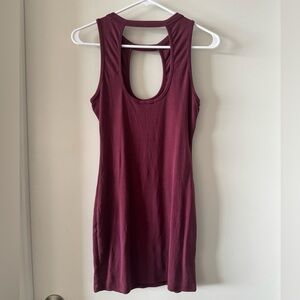 Charlotte Russe cut out mini dress, maroon color, soft modal ribbed stretch material, fitted with lots of stretch, cut outs at front and back, in very good used condition. Modal/Polyester blend. Women's Size Small.