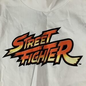 Color/Graphics: White with bold Street Fighter logo at chest; right sleeve reads GAME WEAR; left sleeve features Street Fighter logo; back prints include "FOR REAL FIGHTERS GAME WEAR & CO. NEW YORK 2017," "FIGHT SEASON," and large "I LOVE TKO."