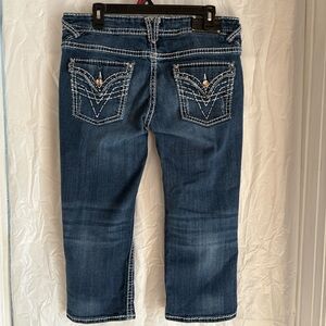 Vigoss The New York Capris Womens 11/12 Embroidered Pockets Denim Jewels