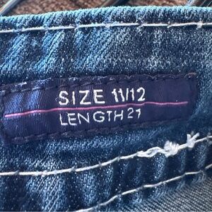 Measurements: 17” flat across waist, 8.5” front rise, 21.5” inseam