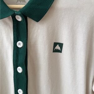 Burton polo shirt in forest green and white. Features a classic collar and button-up design.