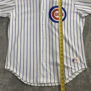 The Vintage Rawlings Jersey is a men's XL officially licensed by Major League Baseball. Featuring the Chicago Cubs team in pinstripes, this USA-made jersey from the 90s is a stylish and nostalgic piece perfect for MLB fans.