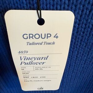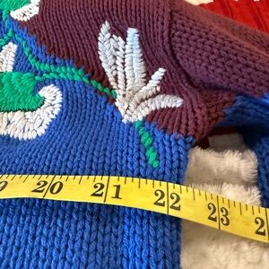 CAbi Blue and Burgundy Sweater with Green and White Accents