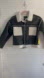 Stylish black jacket with white trim. Features cozy lining and button closure. Measures pit to pit 19” and shoulder to bottom 17 1/2”