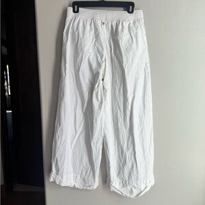 Roxy White Linen Blend Wide Leg Pants M | Beachy Elastic Waist Resort Style