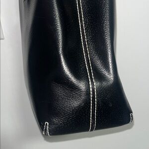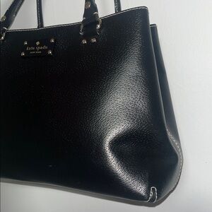 black leather Kate Spade New York Wellesley Durham or Quinn satchel bag. This bag is beautiful for every day use this bag is also preowned so it does show light signs of aware. No ripped tears or corner rubs but does look like it has a bit of color transfer near the bottom just a little please see pictures for details. Product Details