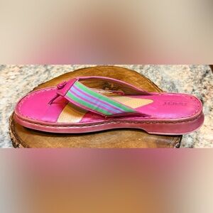 Make every outfit pop with these gorgeous Born hot pink leather thong sandals in women’s size 10.