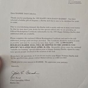 Comes with a special Barbie photo and letter from Mattel.