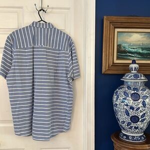 Men’s Club Room Light Blue & White Striped Short Sleeve Button Up Shirt Size XL