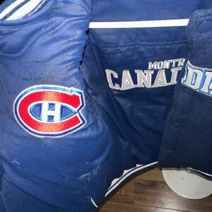 Stylish kids varsity jacket in blue and white. Perfect for casual outings.