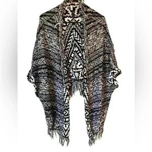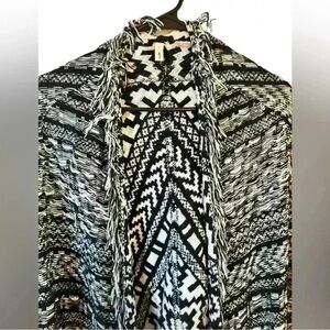 Anthropologie Moth fringed jacquard Cardigan Poncho Black and White