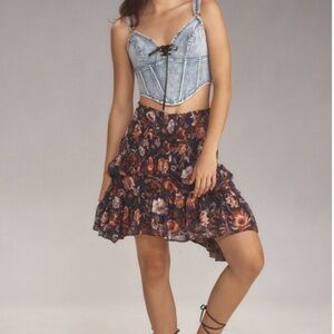 Anthropologie Asymmetrical Smocked Mini Skirt