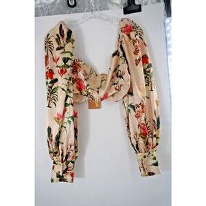 The Brand Label Women Sz L Botanical Floral Print Puff Sleeve Crop Boho Top NWT