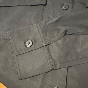 Elevate your style with this sleek black button-up jacket shirt. Perfect for any occasion, this shirt offers both comfort and elegance. Cool comfy material. 21” p2p, 28” long.