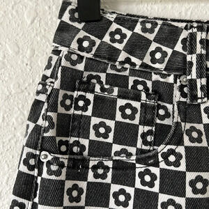 PAC SUN Roxanne Black and White Checkered Floral Denim Mini Skirt Size 26