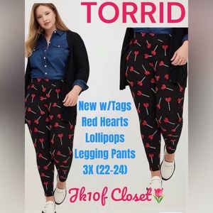 🌷NWT TORRID 2X or 3X RED HEART LOLLIPOPS PANTS