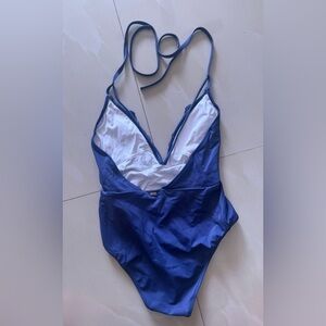 Victoria’s Secret PINK Swimsuit Floral Swim Embroidered Plunge One Piece Navy S/