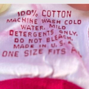 Please see images for items condition. There is some fading and wear of t-shirt. There is a mark at the neck that may or not be part of the print it’s hard to tell. There is also a small white spot as shown. There are some loose threads at the hem as shown.