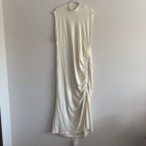 NWT Daily Practice by Anthropologie Mock-Neck Ruched Midi Dress Women’s 2X White