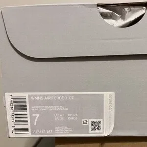 Brand new in the box Nike Air Force 1s in Ladies size 7. These are white leather with University Red, and beautiful Blush Pink accents, including the laces.